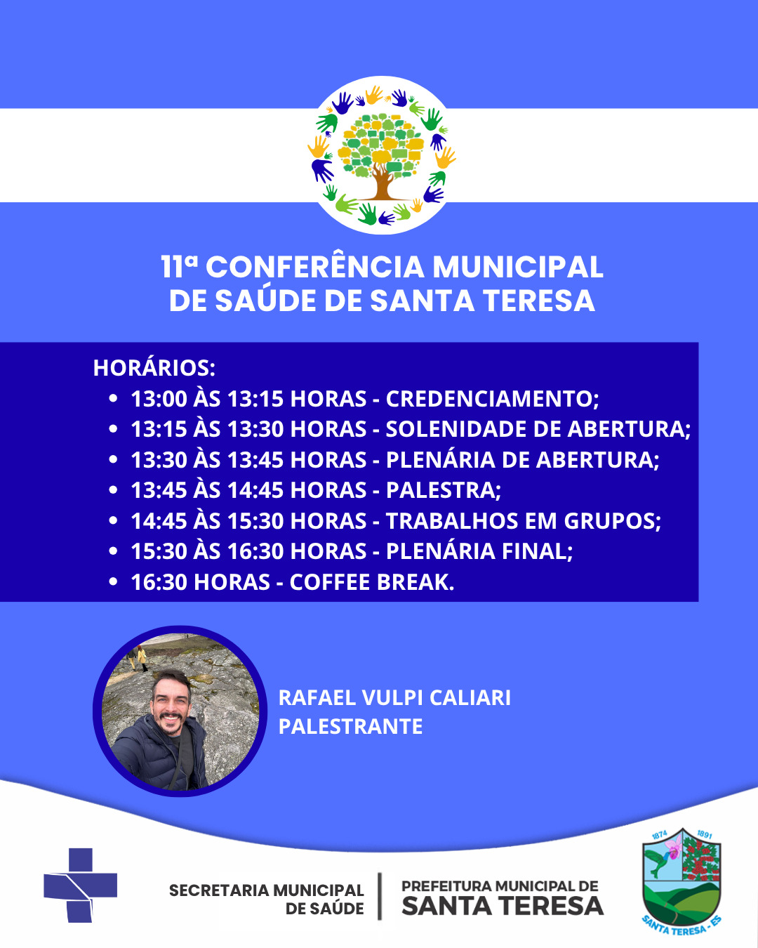 | Não se Aplica | 14/11/2025 | 2025 | Não se Aplica | Publicação - Feed Instagram (Reunião Ampliada do Conselho Municipal de Saúde de Santa Teresa - 11ª. Conferência Municipal de Saúde). [Página 03] | Publicação - Feed Instagram (11ª. CMS - Santa Teresa) [03].jpeg | 332.37 KB |